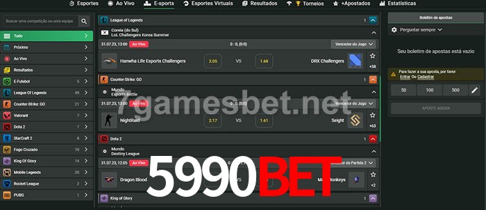 O 5990bet oferece uma grande seleção de opções de apostas em e-sports com probabilidades competitivas